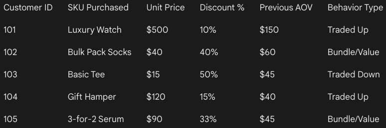Analyze whether customers traded up, traded down, or shifted to bundles during the festival. Highlight how discount depth and urgency influenced SKU selection.
